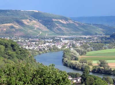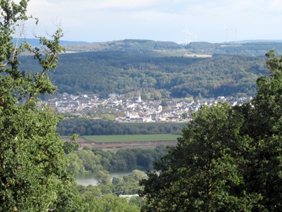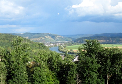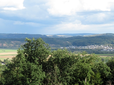 Aufgrund von Baumfällungen wg. Sturmschäden hat man jetzt von hier einen weiten Ausblick bis ins Moseltal. [1]