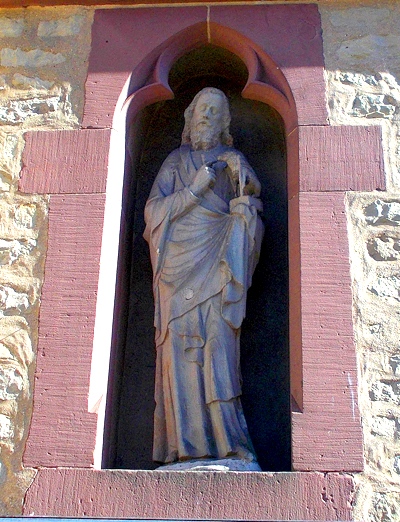 Am Außenbau verdient rechts neben dem Haupteingang eine spätgotische Sandsteinfigur aus der ersten Hälfte des 14. Jahrhunderts besondere Beachtung. Sie stellt Johannes den Täufer mit Lamm und Buch dar. [1]