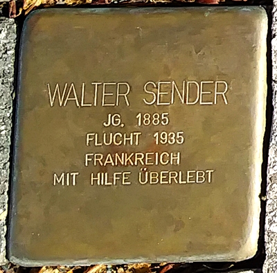 Walter Sender wurde am 10. Mai 1885 in Tholey als Sohn des jüdischen Elementarlehrers German Sender und Pauline Wolf, der zweiten Ehefrau, geboren. Er legte 1905 am MPG die Abiturprüfung ab. Er studierte von 1905 an der Universität in Bonn Jura. Im Jahre 1916 promovierte er an der Universität Heidelberg mit dem Thema: „Die materielle Rechtskraft im Preußischen Fürsorgeerziehungsgesetz.“