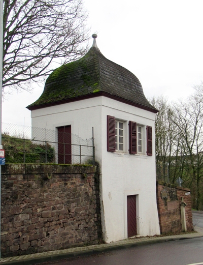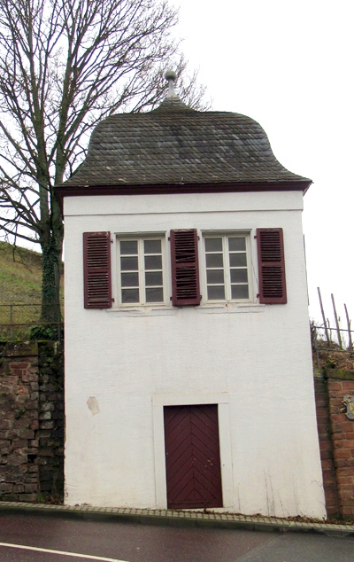 Altes Weinbergshäuschen an der Ecke Olewiger-Sickingenstrasse, gegenüber dem Amphitheater. Vom Baustil ähnlich dem Olewiger Weinbergshäuschen. [1]