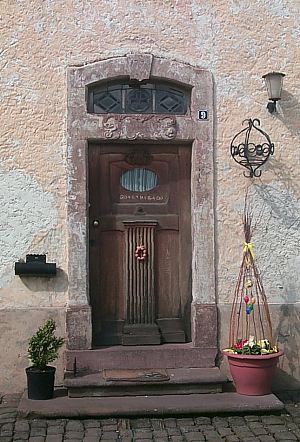 Das ehemalige Pfarrhaus ist aus dem Jahr 1759. Dieselbe Jahreszahl überliefert auch der Türsturz auf dem ein christlicher Spruch (Deo princpi et amico benevolo patet= offen für Gott, den Fürsten und den wohlwollenden Freund) steht. Die Oberlichtverglasung stammt aus dem letzten Viertel des 19. Jahrhundert.