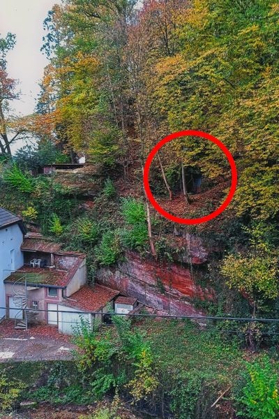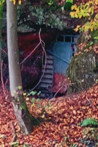 Oberhalb des Hauses Mühlenweg 6 im Felsen. Versperrt, unzugänglich. [1]