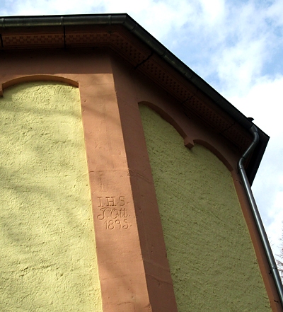 An der oberen Außenfassade der Kapelle Zum Kreuzchen ist diese Inschrift zu sehen.