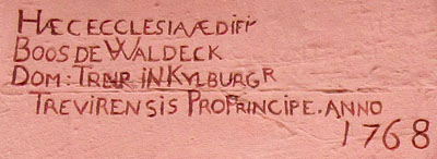 Die beschädigte Inschrift über dem Westportal wurde zwischenzeitlich restauriert und ist wieder (größtenteils) lesbar: