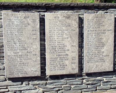 Vor der Kirche Sankt Quintin befindet sich ein Ehrenmal/Gedenktafel für die Gefallenen und Vermissten der beiden Weltkriege aus Lampaden. [1]
