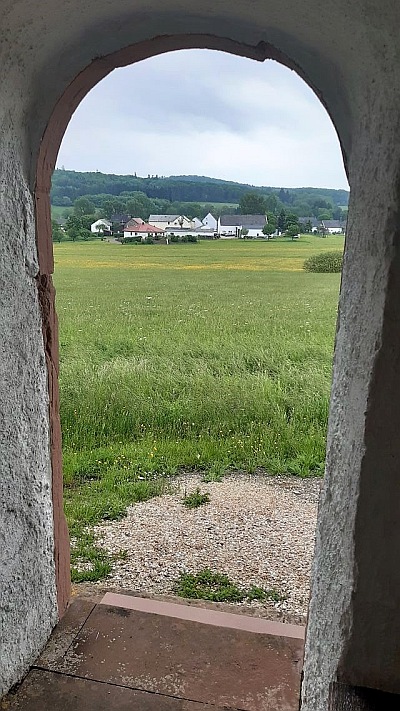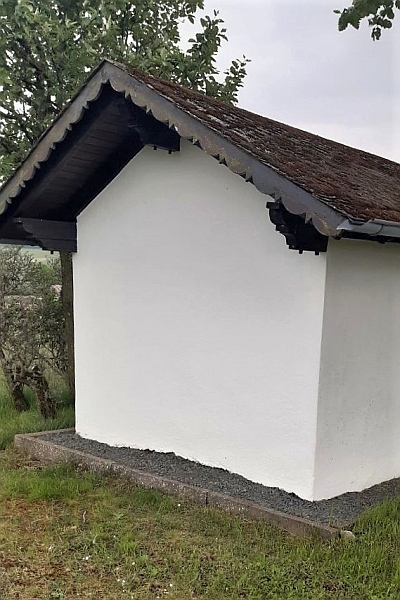 Kleiner Putzbau mit profiliertem Rundbogenportal, bezeichnet 1664. [1]