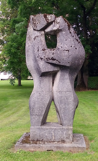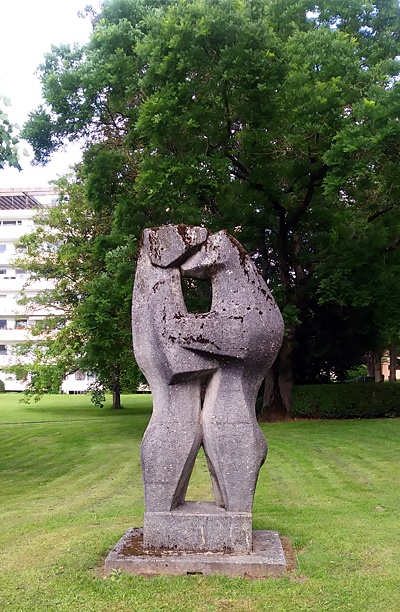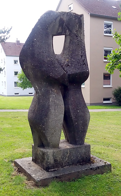 Bärenskulptur auf der Grünfläche zwischen der Stauffenberg- und Georg-Schäffer-Straße in Trier-Heiligkreuz. [1]