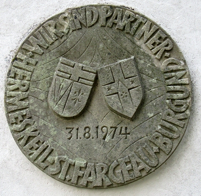 Städtepartnerschaftssiegel an Hauswand in Saarstraße Hermeskeil.