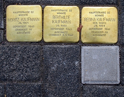Vor der Hauptstraße 34a, Wasserliesch wurden am 13.09.2021 drei Stolpersteine für die Familie Kaufmann verlegt. [2]