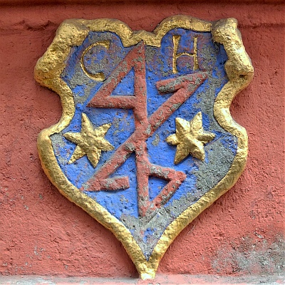 Hanff Konrad, Waffenschmied - Neander Katharina, Wappen von 1602, mit den BuchstabenC.H., Hauptmarkt 23, Hintertür in der Judengasse. [2]