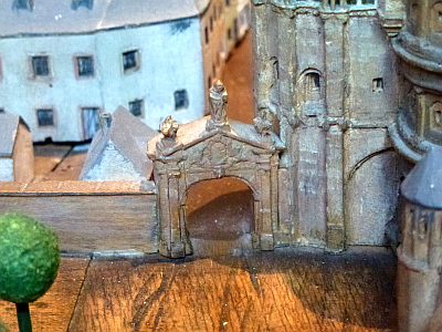 Anachronismen im Stadtmodell stellen das Kasino am Kornmarkt und das Landarmenhaus in der Brückenstraße dar, die erst in preußischer Zeit errichtet wurden.