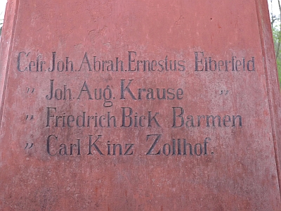 "Der Kriegerverein Pelm lässt, unterstützt von vielen Vereinen aus der Gegend von Barmen, an der Unglücksstelle für die Verunglückten ein Denkmal errichten. Die Zeichnung zu diesem schönen Denkmal machte der Regierungsbaumeister Zengler aus Bonn. Die Ausführung des Denkmals wurde zwei jungen, strebsamen Steinhauern aus Gees (Peter Kuhl und Thomas Kuhl) für 500 Mark übertragen."
