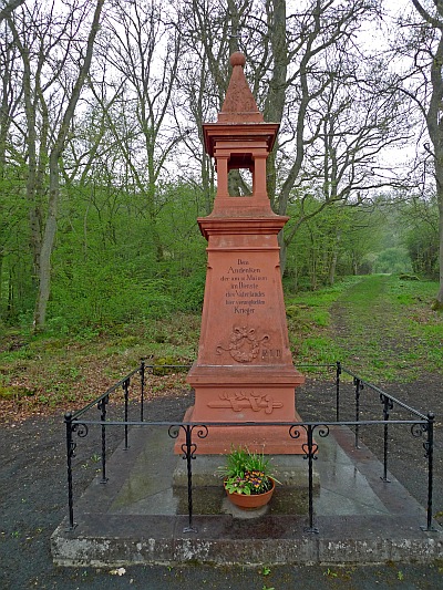 Das nach jahrelanger Arbeit restaurierte Ehrenmal wurde auf Initiative des Pelmer Kriegervereins und mehrerer Honoratioren der umliegenden Orte errichtet und am 30. Mai 1898 eingeweiht. Seitdem war es fast in Vergessenheit geraten und zugewachsen.