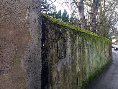 Den restlichen Zwickel zwischen Stadtmauer und Mosel, Martins- und Katharinentor nahm der ehemalige Deutschherrengarten ein. Er besaß eine eigene Ummauerung, die ihn nicht nur zur Mosel und zum Martinskloster, sondern auch zum Stadtgraben - dem hier sogenannten Schießgraben - hin begrenzte. Zugänglich war er auf der Nordseite durch ein überdachtes Rundtor, dessen Schlußstein die Jahreszahl 1769 trug.