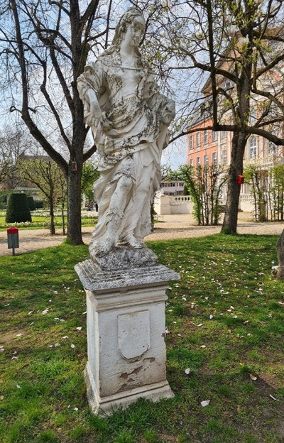 Als der Park nach dem zweiten Weltkrieg der Stadt übertragen wurde, wurden sie entlang des Wasserbassins im Palastgarten zwischen Kurfürstlichem Palais und dem Landesmuseum zusammengeführt. [Bilder 3 bis 5]