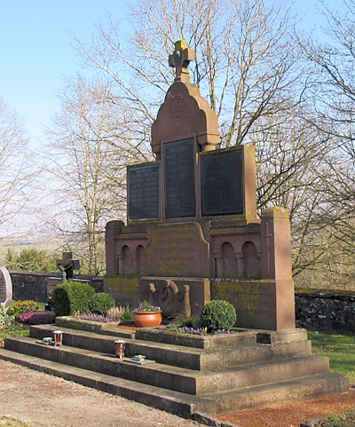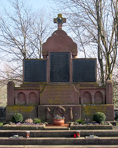 Kriegerdenkmal für die Gefallenen beider Weltkriege auf dem Friedhof in Idenheim.