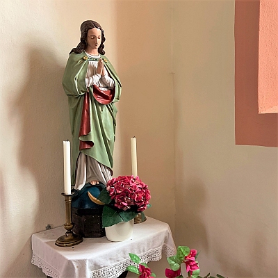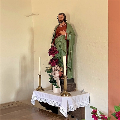 Der Säulenaltar des 18. Jahrhunderts stammt aus einer Kirche in Ammeldingen. [1]