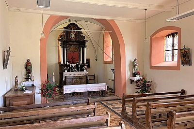 Der zweiachsige Saalbau mit quadratischem Chorturm ist spätestens im 15. Jahrhundert entstanden. Im Jahr 1820 fand eine Renovierung statt, im Zuge derer der Eingang von seinem ursprünglichen Ort zwischen den beiden Zwillingsfenstern an die Westseite verlegt wurde.