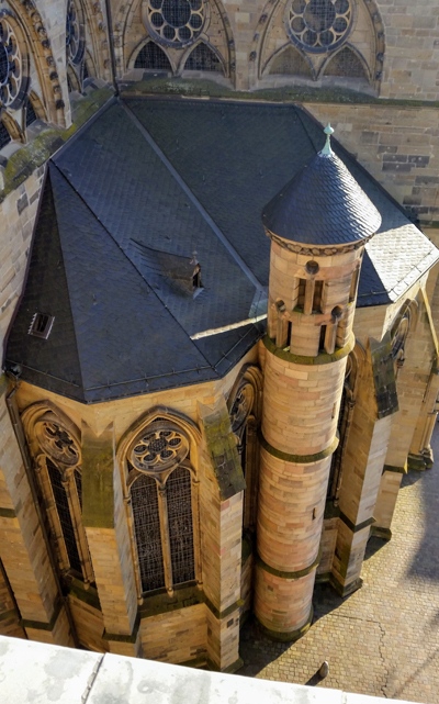 Drei Selige finden im Trierer Dom ihren Platz. Februar 2015. Schwester Blandine Merten, Bruder Peter Friedhofen, Mutter Rosa Flesch. Alle drei Selige sind das geistige Gerüst, das uns Menschen - Gläubigen Kraft gibt. Ähnlich wie ein geschraubtes Stahlgerüst über dem Domgewölbe Kraft und Verbundenheit vermittelt, so sorgen Schwester Blandine, Peter Friedhofen und Mutter Rosa Flesch im Gebet mit uns für seelische Behaglichkeit. Dankenswerterweise durfte ich damals über dem Domgewölbe aufnehmen. Es ist eine grosse Ehre für mich, das ich diese Fotos zeigen darf. PS: hier gilt mein Dank an Frau Andrea Riesbeck, Leiterin der Dom - Information. [1]