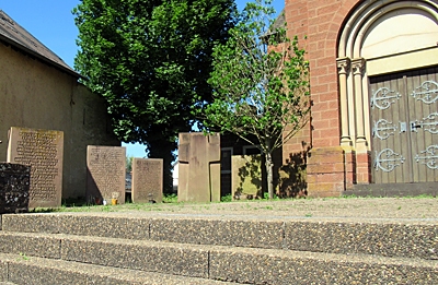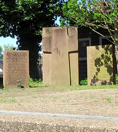 Sandsteinkreuz mit Gedenktafeln beiderseits für die Gefallenen der beiden Weltkriege. [1]