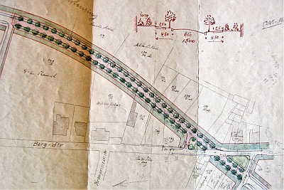 Der Beschluss des Bauausschusses vom 7. Januar 1921 sah einen ersten Ausbau des "Kurfürstenringes" [Bild 2] von der Bergstraße bis zum Gelände des ehemaligen Schützenhauses vor. In der Sitzung vom 14. Jan. 1922 beschloß der Bau-Ausschuss die Verlängerung des Ausbaues bis zum Weg nach dem Petrishof.