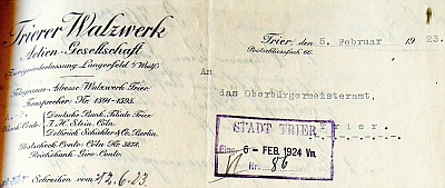 1923 haben bereits 4 Familien die inzwischen in der "Kurfürstenstraße" erstellten Werkswohnungen für Mitarbeiter des Trierer Walzwerk bezogen. Das Werk reklamiert im Februar 1924 die fehlende Straßenbeleuchtung, sowie die Abfuhr von "Kehricht". Auf Grund der begehrten Wohnlage am Fuß des Petrisberges ging die Bebauung zügig voran.