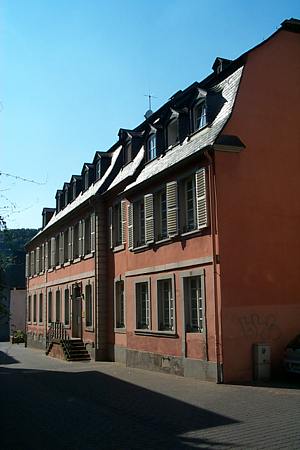 Der Barockbau des späten 18. Jahrhundert ist ein zweigeschossiger Putzbau mit stichbogiger Sandsteingliederung und traufseitigem Mansarddach. Das ursprünglich in der Mittelachse befindliche Portal heute seitlich versetzt über neuer Freitreppe; das geohrte Gewände zeigt im Scheitelstein das Schifferzunftzeichen und die Initialen der Erbauer HB - A Meter HB.. [1]