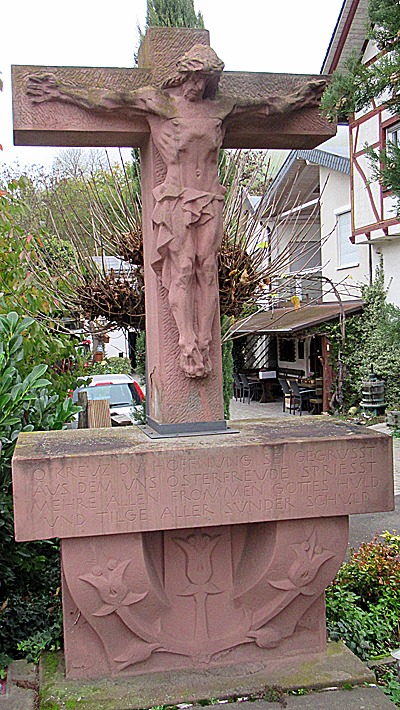 Mächtiges Sandsteinkreuz bei Lieser-Brücke.