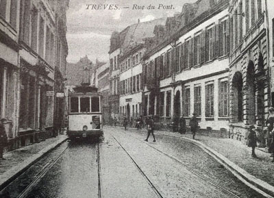1903 Beschluss des Trierer Stadtrats zum Bau einer normalspurigen (1435mm) Straßenbahn.
