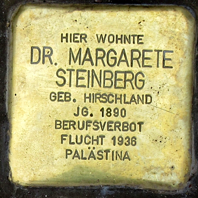 Vor dem Haus Theodor-Heuss-Allee 8 wurden am 03.02.2023 4 Stolpersteine für die Familie Steinberg verlegt.