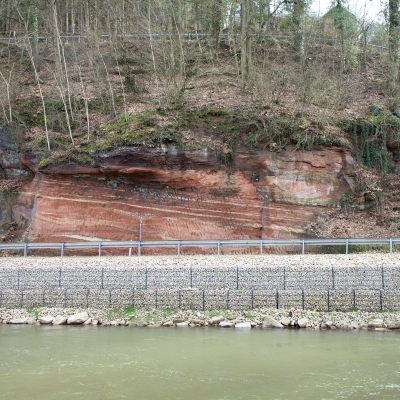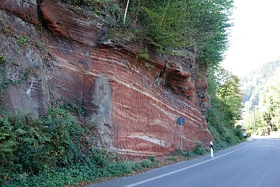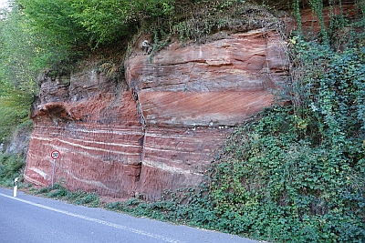Sandsteine der Burg-Ramstein-Schichten mit darüber liegender Felszone. [1]
