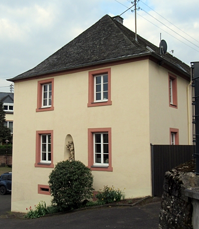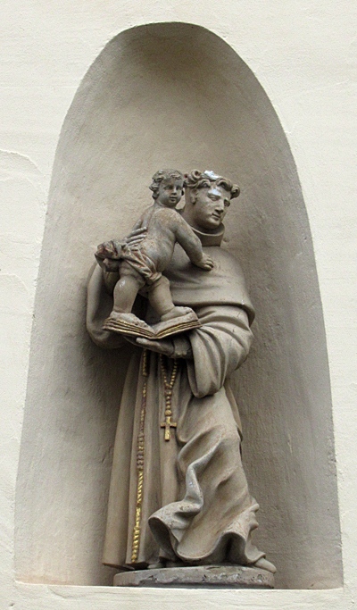 Pfarrhaus in Kenn. An der Giebelseite befindet sich eine Figur des hl. Antonius in Mönchskutte aus dem 18. Jahrhundert. [1]