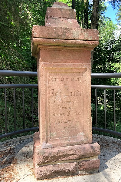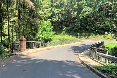Die Brücke aus roten Sandsteinquadern verbindet die beiden von Sülm ins Kylltal führenden Straßen. Ein Gendenkstein mit Kugelbekrönung erinnert an JOHANN LICHTER aus Looskyll der sie 1882-83 erbaute. [1]