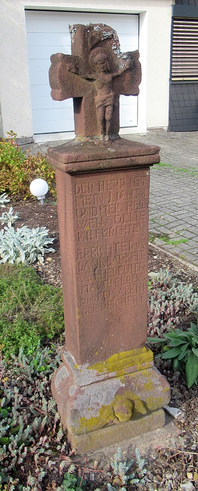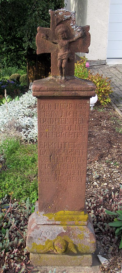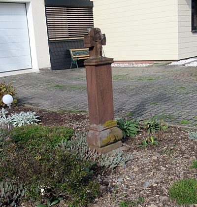 Sandsteinschaftkreuz im Vorgarten von Anwesen Römerstraße 6.