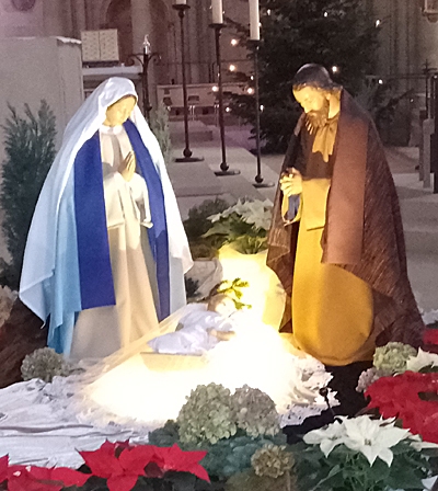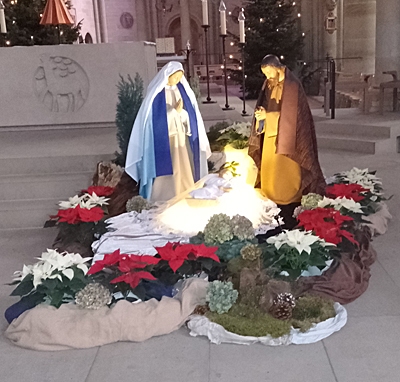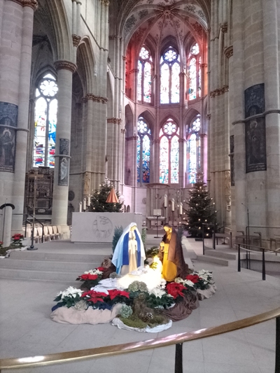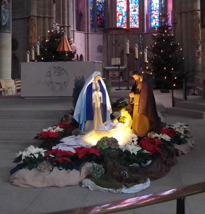 Weihnachtskrippe 2023 (und der vergangenen Jahre) in der Liebfrauenkirche Trier im vorderen Teil der Altarinsel. [1]