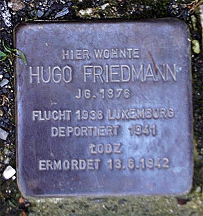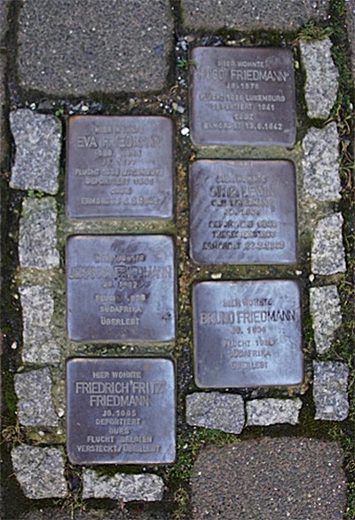 Im Jahr 2008 wurden Stolpersteine für die Familie von Hugo und Eva Friedmann in Bernkastel-Kues verlegt. Zu der Verlegung kamen Familienangehörige aus Brüssel und aus Südafrika. [2]