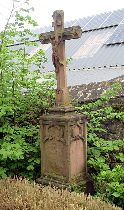 Sandsteinkreuz bei der Kirche, ev. Grab- oder Pastorkreuz. [1]