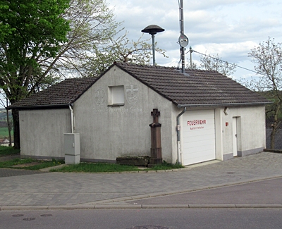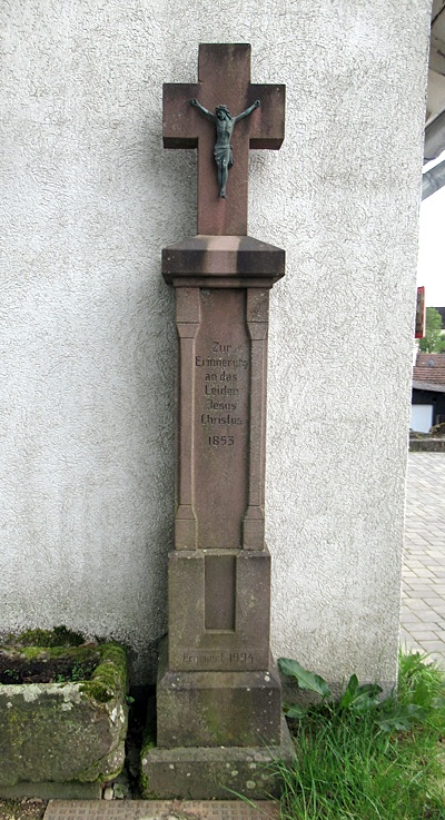 Schaftkreuz, bezeichnet 1853, direkt an Hauswand am Feuerwehrhaus Sülm angebracht / versetzt.