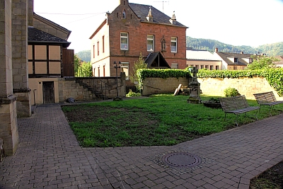 Der Grabstein fand [...] Aufstellung auf dem vor der Sakristeitür liegenden früheren Kinderfriedhof, der eingeebnet und mit Gras bepflanzt wurde. [1]
