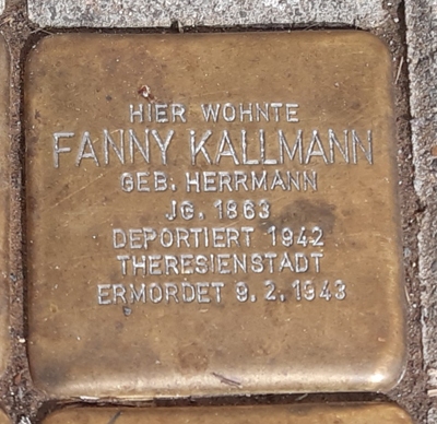 Vor dem Anwesen Scharzbergstraße 9, Oberemmel, wurden im März 2024 insgesamt 4 Stolpersteine für die deportierte und anschließend ermordete Familie Kallmann angebracht. [2]