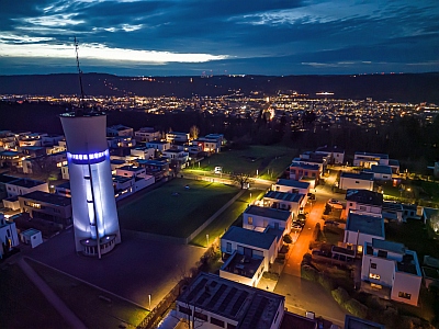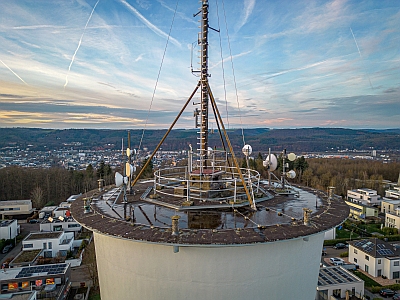 Der Turm ist etwas mehr als 39 Meter hoch, der Hochbehälter fasst 412 000 Liter Wasser.