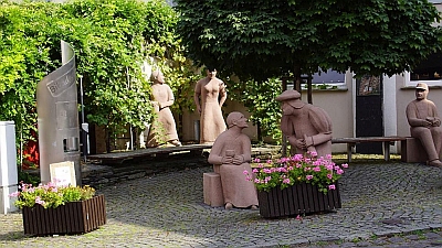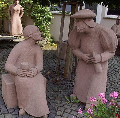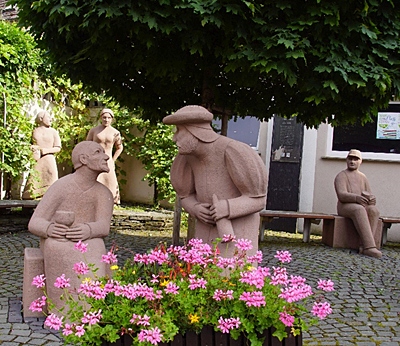 Die Skulpturen erinnern an die Sage vom Teufel und dem Pfalzgrafen.