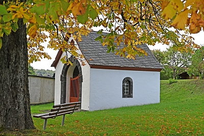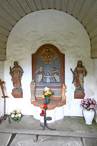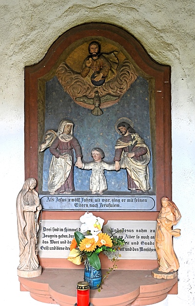 Basalt, wohl aus dem 18. Jahrhundert; Altar mit älterem Sandsteinrelief. [1]