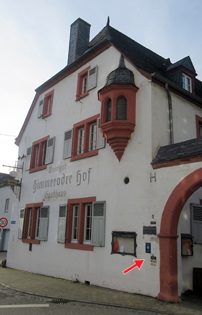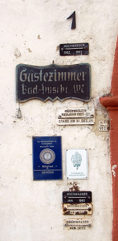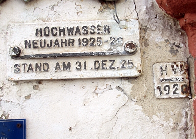 Am Himmeroder Klosterhof befinden sich an der Frontseite des Hauses sechs historische Hochwassermarken.