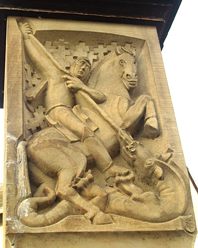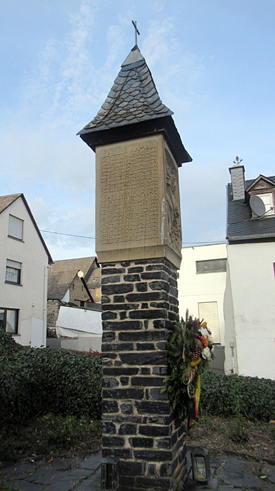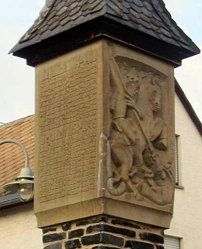 Bei der Kirche Sankt Georg befindet sich ein Gefallenendenkmal in Stelenform. Der Schaft aus Bruchstein, darüber ein Sandsteinrelief des Hl. Georg, an den Seiten die Namen der Gefallenen beider Weltkriege eingemeißelt, als Abschluß ein Schiefergiebeldach. [1]