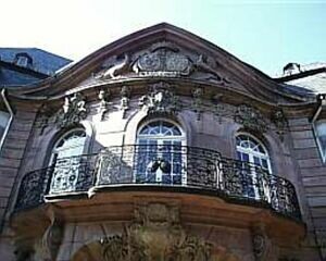 1740-46, ehemaliger Adelshof, von Valentin Thomann für den Oberamtmann Karl Friedrich Melchior Graf Kesselstatt errichtet. Nach der Zerstörung von 1944 im alten Zustand wiederhergestellt. Repräsentativer Bau mit hohem Mansarddach. [1]