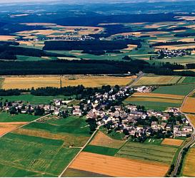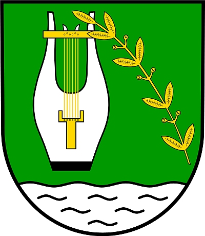 Es handelt sich um ein vor 20 Jahren hoch im Walde ausgegrabenes römisches Quellheiligtum aus dem 2. Jahrhundert. Die Attribute des Quellengottes Apollo, Leier und Lorbeer sind mit Wasser der Quelle im Ortswappen festgehalten. [1]
