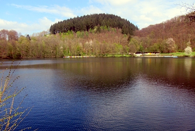 Circa 1,5 km südlich von Daun, mit einer Wasserfläche von ca. 7,2 Hektar, liegt mit etwa 2/3 auf der Gemarkung Schalkenmehren, mit 1/3 und dem Teil des Freibades in der Gemarkung Gemünden (Stadt Daun).