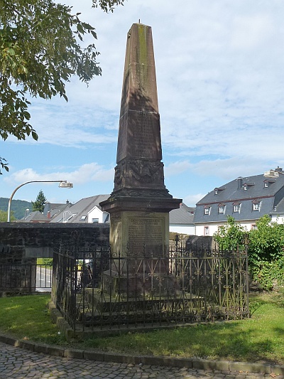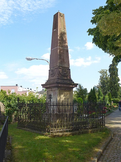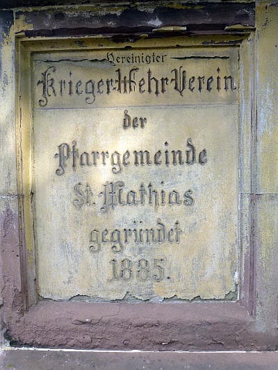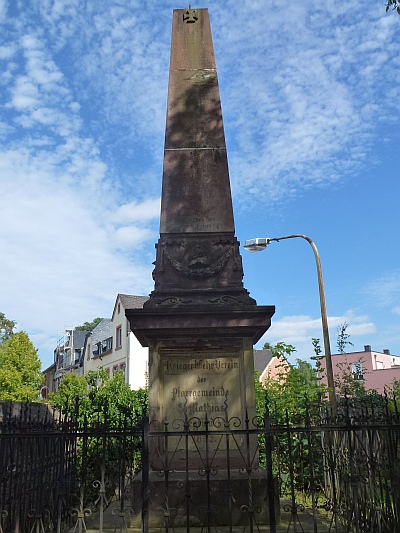 Obelisk für die Gefallenen und an den Folgen des Krieges gestorbenen Soldaten des 1870 / 71er Krieges aus der Pfarrei Sankt Matthias. Initiator für die Errichtung war der 1885 gegründete "Vereinigte Krieger Wehrverein der Pfarrgemeinde Sankt Matthias". Der Entwurf stammt vom Trierer Bildhauer Caspar Weis, der auch das Denkmal des "Trierer Kriegervereins" auf dem Hauptfriedhof geschaffen hatte. [1]