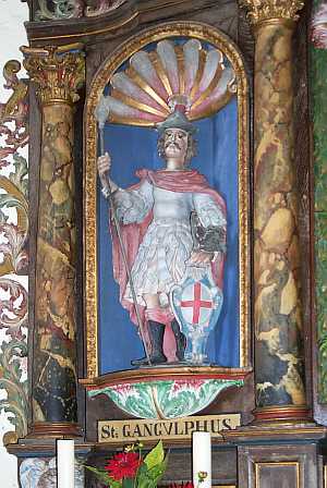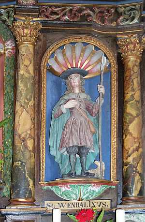 Am südlichen Ortsrand über einem Felsvorsprung über dem Bacheinschnitt des Dilmarbaches thronende kleine, verputzte Saalkirche. Das durch rundbogige Fenster gerade geschlossene Schiff wurde 1738 erbaut und an den spätromanischen Ostturm, ursprünglich Chorturm angefügt. Der dreigeschossige Turm wurde beim Neubau des Schiffes als Eingangsturm geöffnet und tonnengewölbt. Gekuppelte Schallarkaden, ein Kämpfer wird von einer Kopfmaske geziert. Im inneren geschnitzter Altar von 1739 mit den Figuren der Mutter Gottes, des heiligen Wendelins, des heiligen Gangolfs, und der heiligen Walburga.[1]
